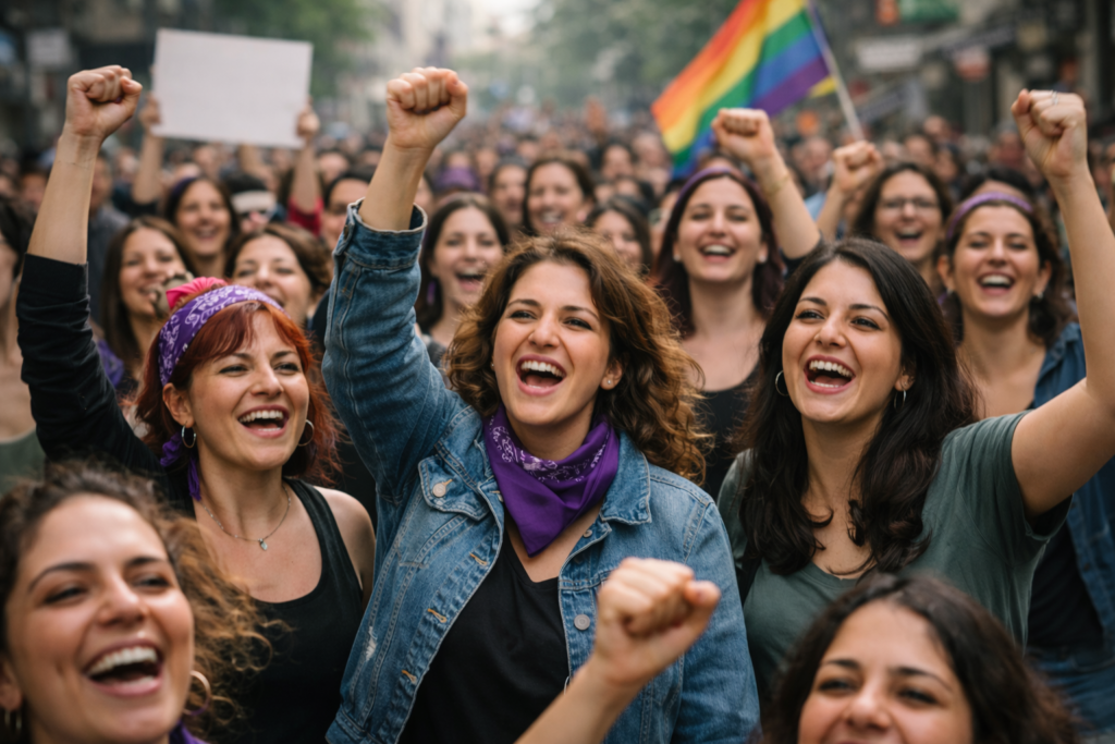 Kadınlarla erkeklerin mekansal deneyimleri farklıdır. Özellikle kentsel mekanlarda güvenlik ve erişebilirlik gibi konularla bu deneyimler birbirinden çok uzaklaşır, yer yer karşı kutuplara konumlanır. Bu nedenle İstanbul 8 Mart Feminist Gece Yürüyüşü’nün en etkili mesajını veren, belki de en coşkulu atılan slogan; siyasi, toplumsal ve mekansal açıdan son derece açık ve nettir: “Geceleri de meydanları da sokakları da terk etmiyoruz.” Bu cümle, yüzyıllarca özel alanlara hapsedilmiş olan kadın ve yok sayılan LGBTİ+ bireylerin kamusal alanda, kentsel mekanlarda en az erkekler kadar var olma hakkı olduğunun altını çizer. Ve bu hakkın kullanımında “neden, nasıl, ne amaçla?” gibi sorularla gerekçe aranmasının yeri yoktur.