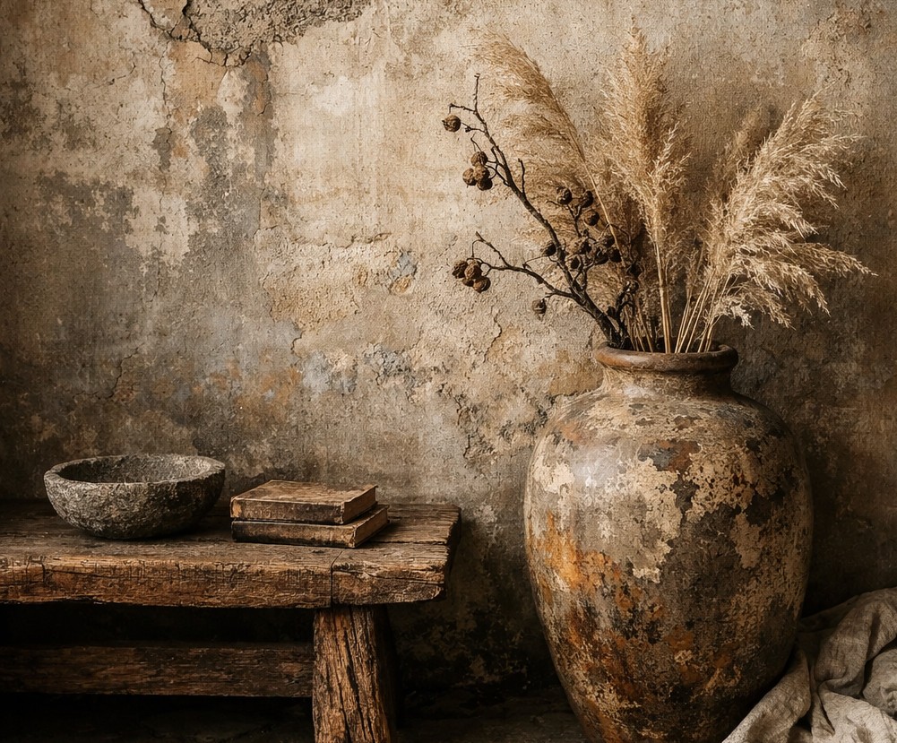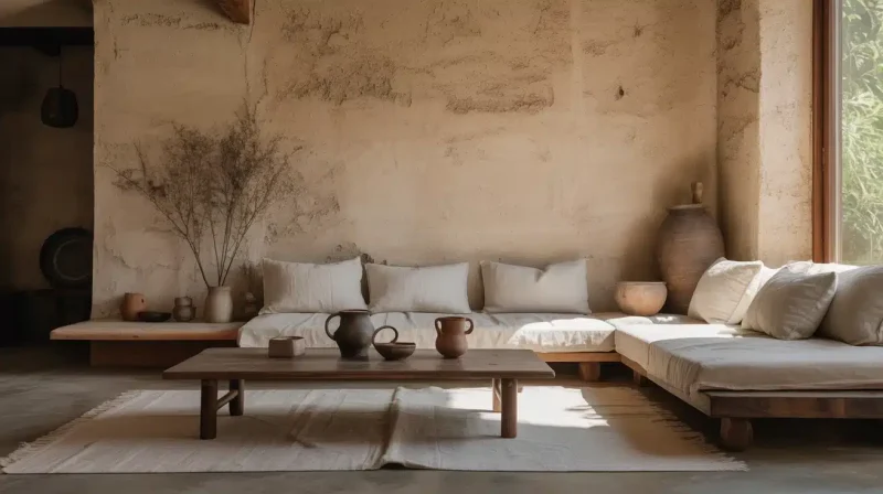 Wabi sabi yaklaşımında malzeme seçimi yapılırken performans kriterleri yalnızca dayanım, mukavemet ya da bakım kolaylığı üzerinden değerlendirilmemektedir. Malzemenin yaşlanma biçimi de en az bu teknik kriterler kadar önemsenmektedir. Ahşapta UV etkisiyle meydana gelen ton farklılıkları, metal yüzeylerde oksidasyon ve patina oluşumu, mineral esaslı kaplamalarda görülen mikro çatlaklar ya da doğal lekelenmeler; bu anlayışta kusur değil, malzemenin zamansal kimliğinin bir parçası olarak kabul edilmektedir.