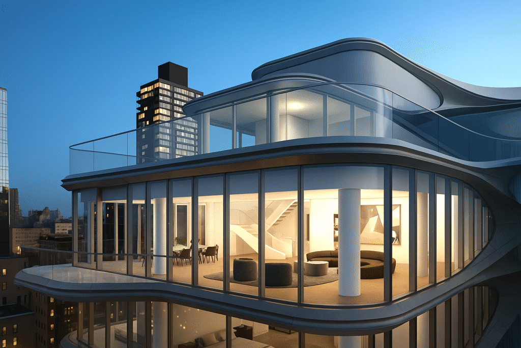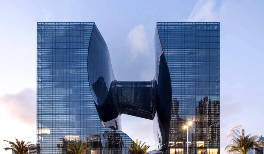 The Opus Penthouse’un cephesi, klasik gökdelenlerin sert ve düz hatlarına karşı koyarcasına kıvrımlı, akışkan ve neredeyse canlı bir yapı gibi tasarlanmış. Yapının merkezindeki amorf boşluk, sadece dikkat çekmek için değil; iki kuleyi hem fiziksel hem de görsel olarak birbirine bağlamak için düşünülmüş. Dış cephede kullanılan özel cam paneller, günün ışığına göre renk değiştirerek binaya sürekli değişen bir karakter kazandırıyor. Gece olduğunda ise, aydınlatmalarla birlikte bina bir ışık heykeline dönüşüyor. Hadid’in mimarlığında sıkça gördüğümüz gibi, dış yüzey sadece kabuk değil, yapının kimliğini taşıyan bir cilt gibi işliyor.