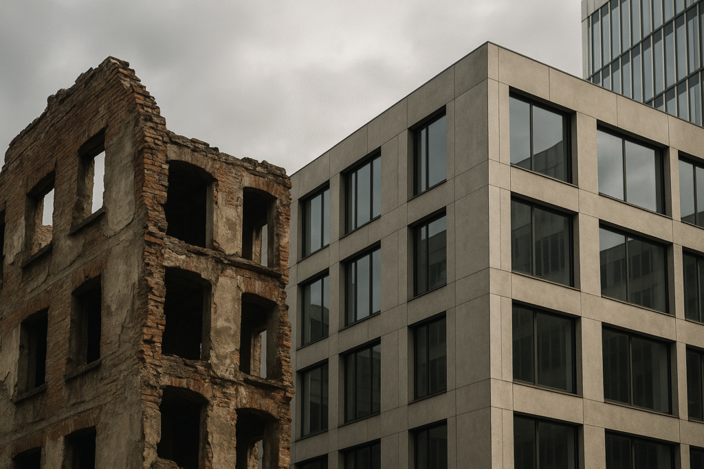 Şehir artık bir kale değildi; ama yeniden inşa sürecinde kendi kendini savunuyordu. Beton yalnızca bir malzeme değil, bir simgeydi. Yıkımın ardından yapılan her blok, her caddede açılan her pencere bunun ifadesi durumunda.